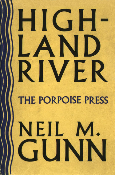 Highland | River | Neil M. | Gunn | [space] | Porpoise | Press Decoration in the form of a winding river, blocked in blue, runs down the full length of the spine.